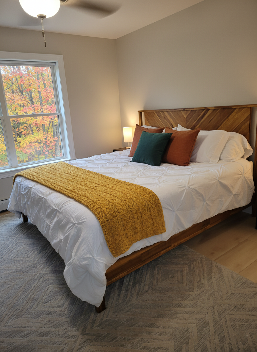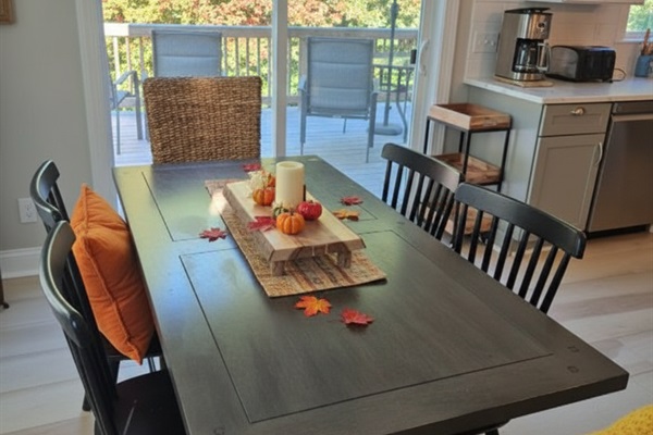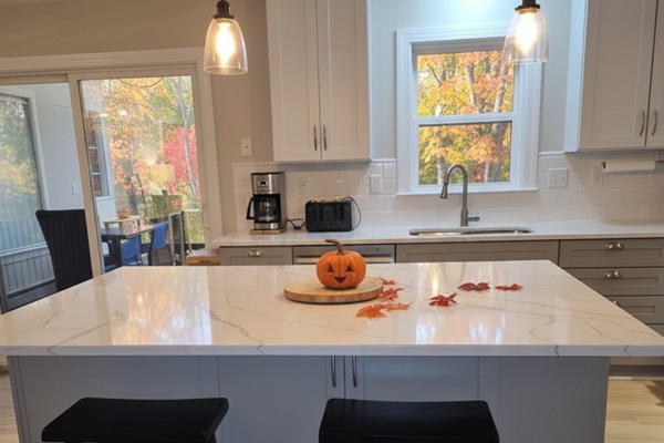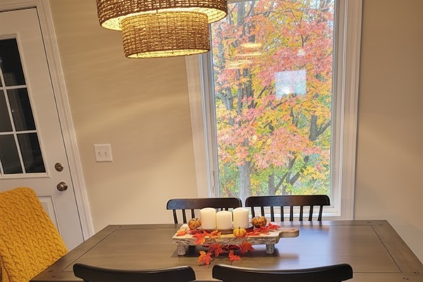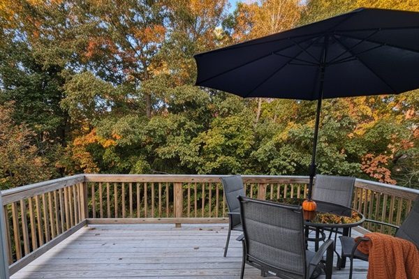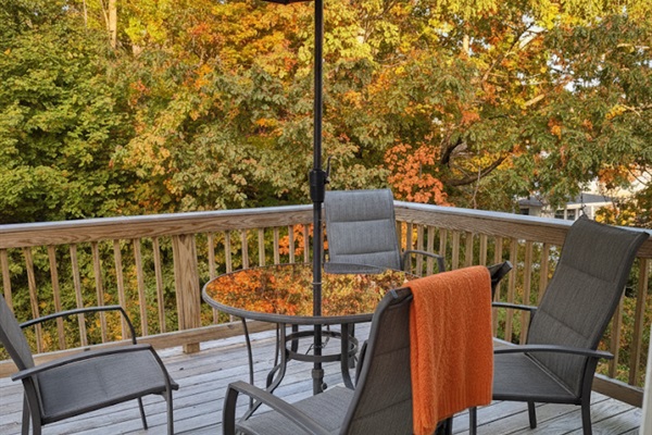 Seasonal Charm | Enjoy a hot cup of coffee on the private back deck surrounded by falling leaves, or come inside to warm up after a day on the slopes. Song Sparrow House is a welcoming base no matter the season.
